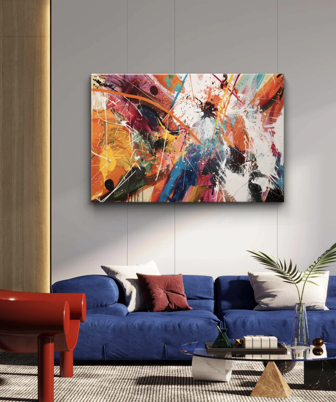 Plongez dans un tourbillon de couleurs avec Explosion Chromatique, une œuvre abstraite qui capture la puissance du mouvement et l’énergie de la couleur. Les éclats d’orange, de bleu et de rouge se mêlent dans une composition audacieuse, évoquant la créativité et la passion. Parfait pour un salon moderne ou un espace de travail dynamique, ce tableau apporte une touche artistique et vibrante à votre intérieur.