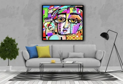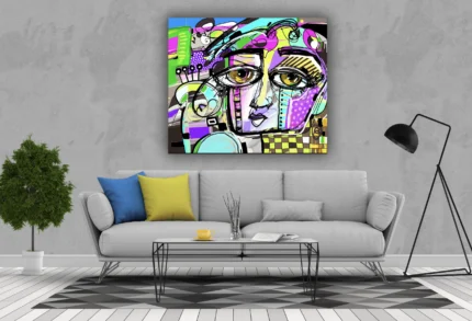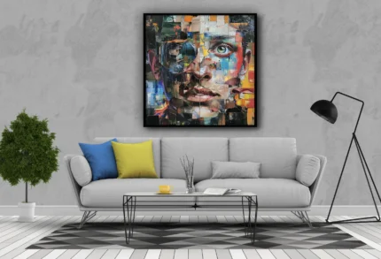 Ajoutez une touche de modernité et de couleur à votre intérieur avec “Regard Artistique”, une œuvre vibrante mêlant portrait contemporain