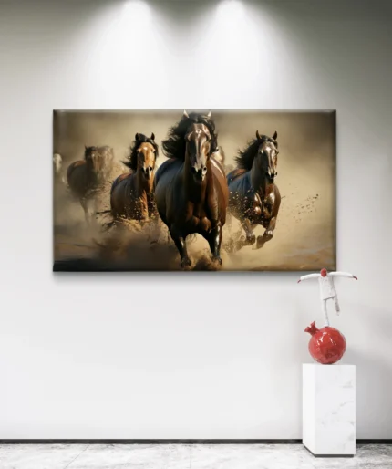 “Impulsion Sauvage” est une explosion d’énergie et de liberté, incarnée par un cheval puissant lancé à toute allure. La toile