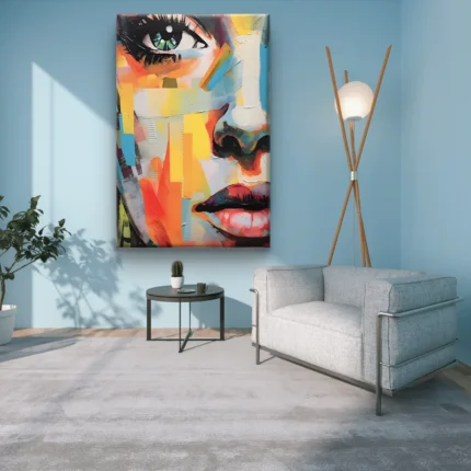 Ajoutez une touche de modernité et de couleur à votre intérieur avec “Regard Artistique”, une œuvre vibrante mêlant portrait contemporain